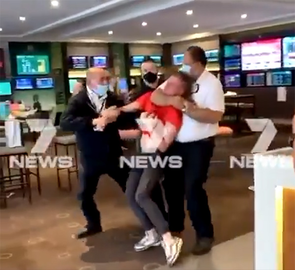 Covid has allowed the medical police state to grow completely out of control, all around the world. Now, new footage has emerged from Melbourne, Australia, where a young man who wasn’t wearing a mask is choked out by security personnel, slammed to the ground, then lifted like a sack of rice and heaved out of a restaurant, all while onlookers are gasping in astonishment. (See video below.)
